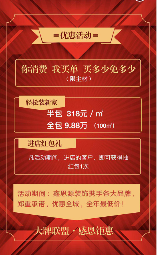 海安装修公司【鑫思源装饰】四周年庆典-你消费我买单!买多少~免多少‼️