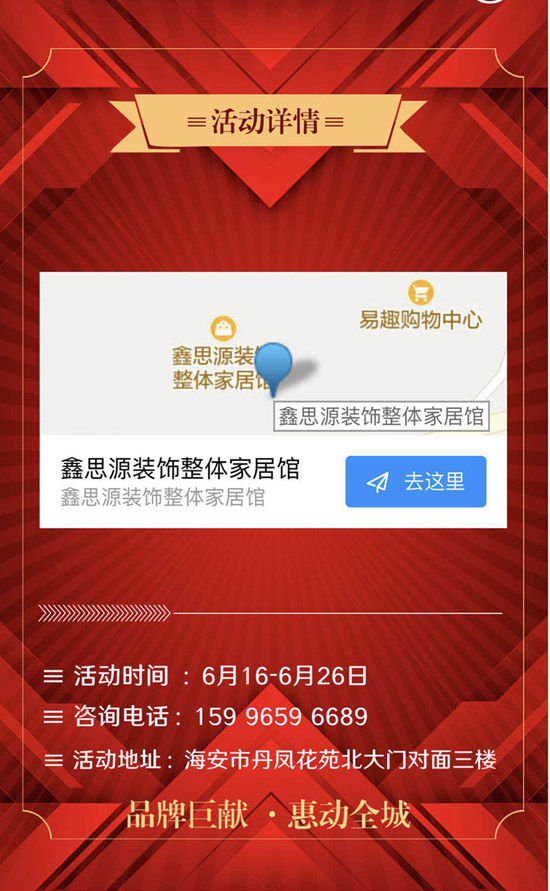 🏞 活动地址:海安市丹凤花苑北大门对面三楼(鑫思源装饰总部)