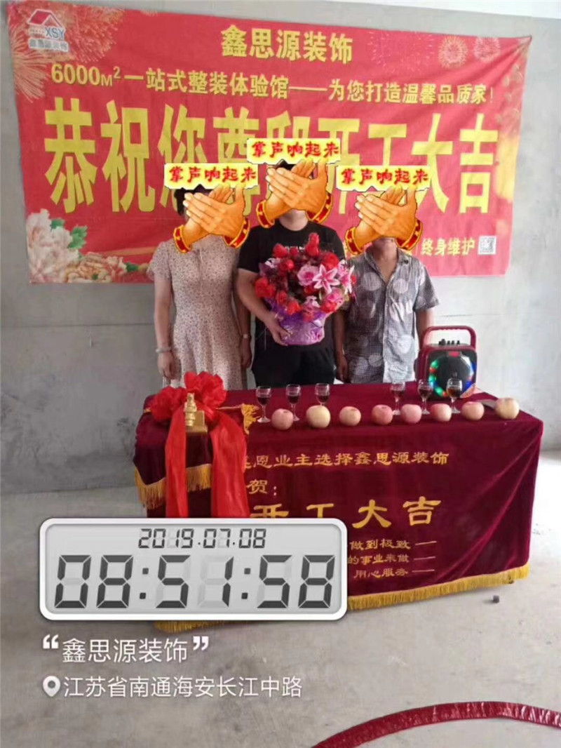 相信装修选择鑫思源准没错我们将虔诚用心努力服务好新家,健康环保品质之家我们一起加油!在这里鑫思源全体员工祝王总吉宅开工大吉堂构增新,华厦开新,玉满堂,焕然一新!!!